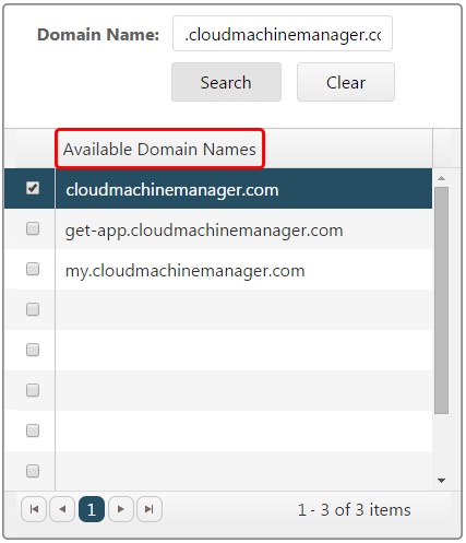 Find and check the domain names that should be linked to the server in the Available Doman Names list.